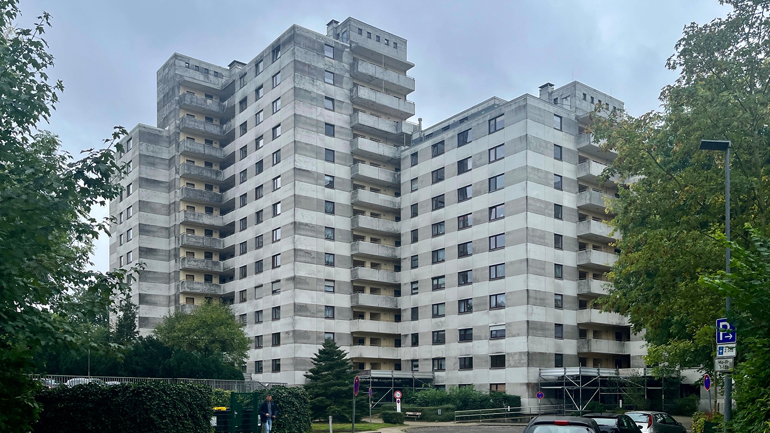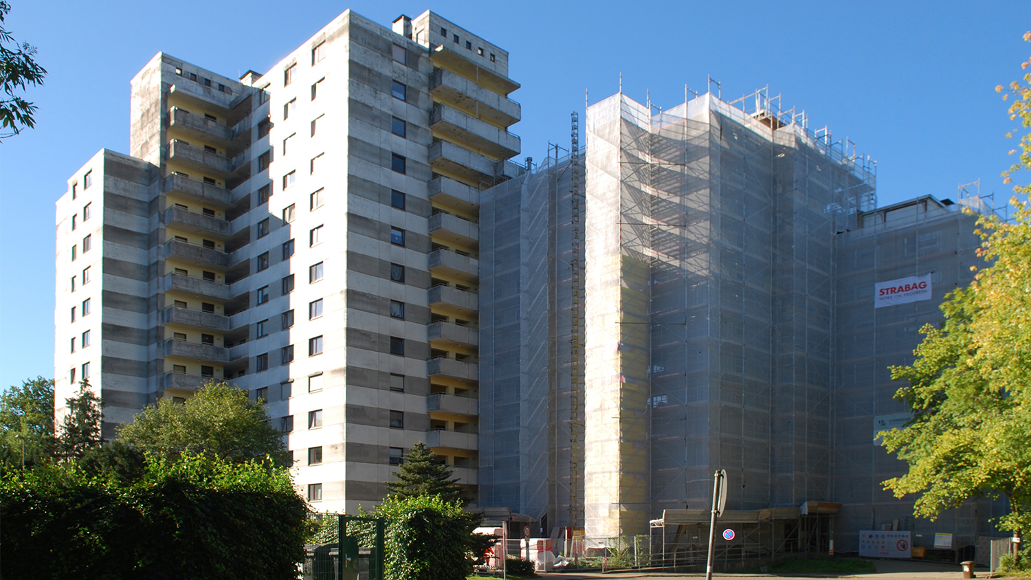 Es ist geplant, die vorhandene hinterlüftete Außenwandbekleidung zu entfernen und komplett zu erneuern. In diesem Zuge wird die Außenhülle gemäß den heutigen Ansprüchen gedämmt. Aufgrund von vorhandenen Betonschäden werden außerdem Laubengänge und Balkone saniert und erhalten eine oberseitige Abdichtung. Zusätzlich werden die Eingangsbereiche neu gestaltet.